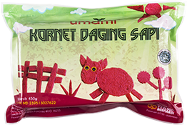 Umami Kornet Sapi terbuat dari daging sapi, tepung dan bumbu pilihan. Disukai anak- anak untuk bekal sekolah maupun jajan camilan sore.
